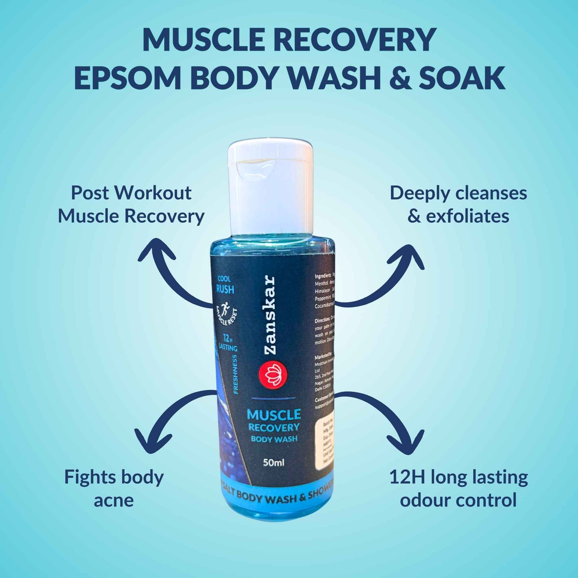 You can use ZANSKAR® Muscle Recovery Body Wash for sore or tired muscles, post-workout recovery, body acne, excess oil/sweat, and to soothe skin irritation or inflammation. Best used after a tiring day playing cricket, football, at the gym or after long hours at office.